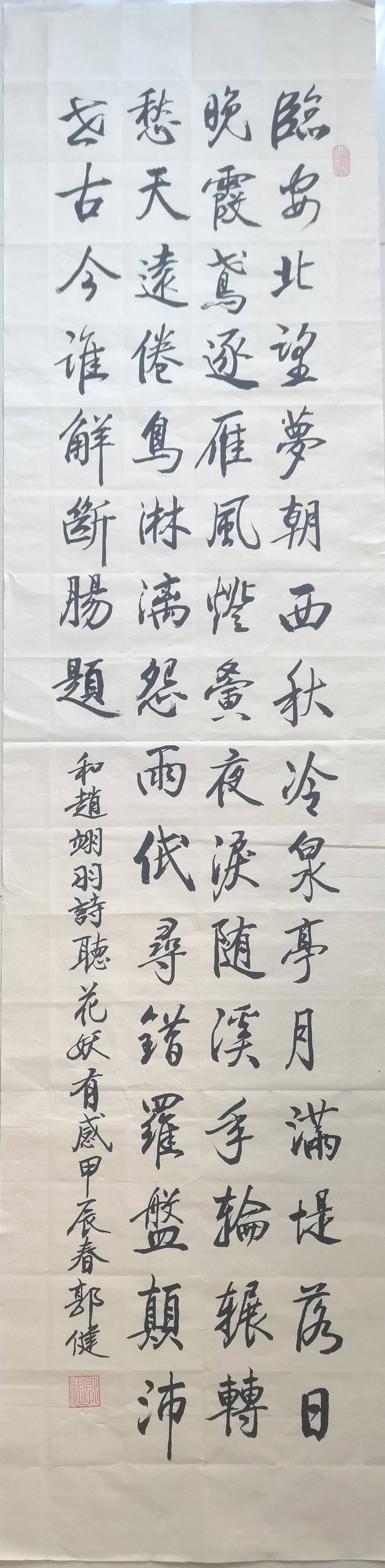 第四组: 和无名氏《七绝·听刀郎花妖曲感怀》 郭健 花谢临安梦已空,妖歌萦绕旧妆红。 和鸣鸾凤今何在?诗写风流意未穷。 《七绝·听刀郎花妖曲感怀》 无名氏 刀痕刻尽几沧桑,郎梦犹追前世香。 花落钱塘千载雨,妖红染透旧时光。 各位朋友,上面四组和诗的形式,你们的判断是什么?欢迎诗友参与探讨。 (说明:无名氏诗为AI作品。除书法字帖外,以上图片均来自网络)