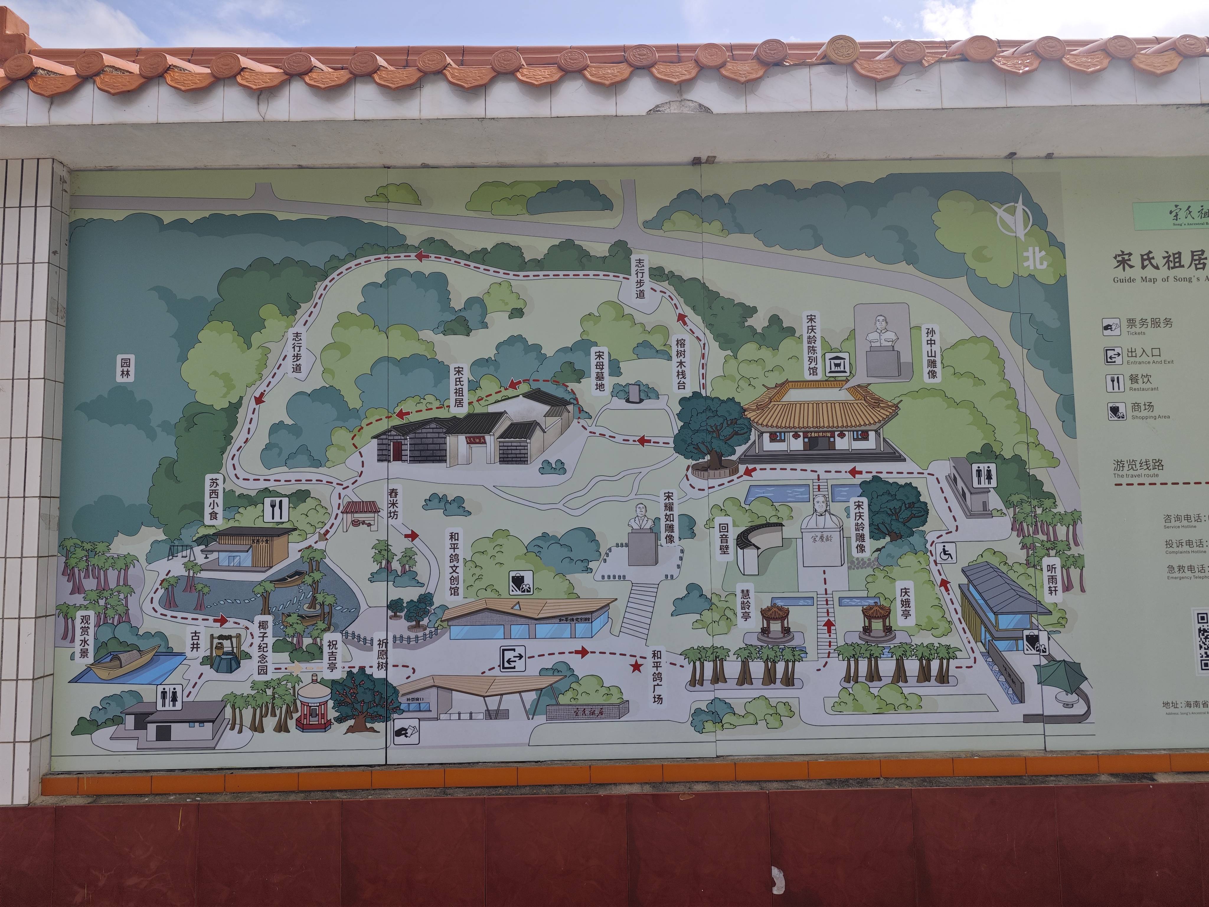 台湾朋友在海南有10天节目,第四天到文昌宋氏祖居参观。 宋氏祖居由韩儒循于清嘉庆年间建造,属砖木结构的海南传统农家宅院,坐西南朝东北,包含两间正屋、两间横屋及门楼等建筑,总占地面积1500平方米。该建筑为宋庆龄祖父韩鸿翼出生地,其父宋耀如(原名韩教准)1861年诞生于此,后成为孙中山革命事业的重要支持者。‌‌ ​宋氏祖居景区位于文昌市昌洒镇古路园村,规划面积约107亩,是我国近现代史上具有重大影响的以宋耀如、宋庆龄为代表的宋氏家族祖居地,也是宋氏家族的“根”之所在。作为海南省人文景观,宋氏祖居以它的不可替代性,吸引了世界及全国各地的人们来寻访宋氏家族的踪迹。 宋氏祖居主要有宋氏祖居、宋庆龄陈列馆、宋耀如雕像、宋庆龄雕像、孙中山雕像、祝吉亭、和平鸽文创馆、听雨轩、椰子纪念园等景点。 孙中山先生的夫人、中华人民共和国名誉主席宋庆龄的高祖、曾祖、祖父3代都居于此地。 宋庆龄的父亲宋耀如于1861年在这间祖居里诞生.为纪念宋庆龄及其家庭在历史上所做的贡献和深远的影响,文昌市人民政府于1985年修复宋氏祖居,并在中国宋庆龄基金会和海内外友好人士的支持下相继兴建宋庆龄陈列馆、宋庆龄植物园,还在祖居北边竖起了高达3.2米的宋庆龄汉白玉雕像。 缅怀革命先烈,拜谒宋氏祖居。 #跟着海哥去丈量世界#