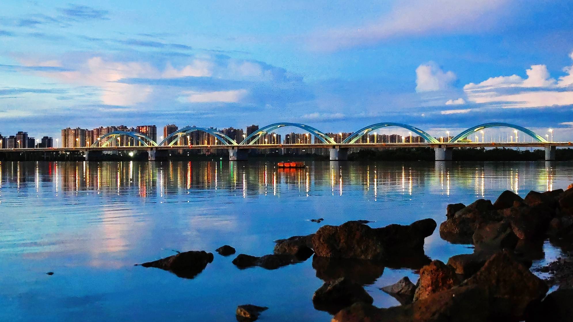 海口的蓝调时刻 蓝调时刻,是指日出前或日出后18-40分钟左右的一段短暂时刻。此时天空被染成静谧幽蓝,世间万物都沉浸其中,美得神秘又让人心醉神迷。 #寻美海南# #寻美中国#