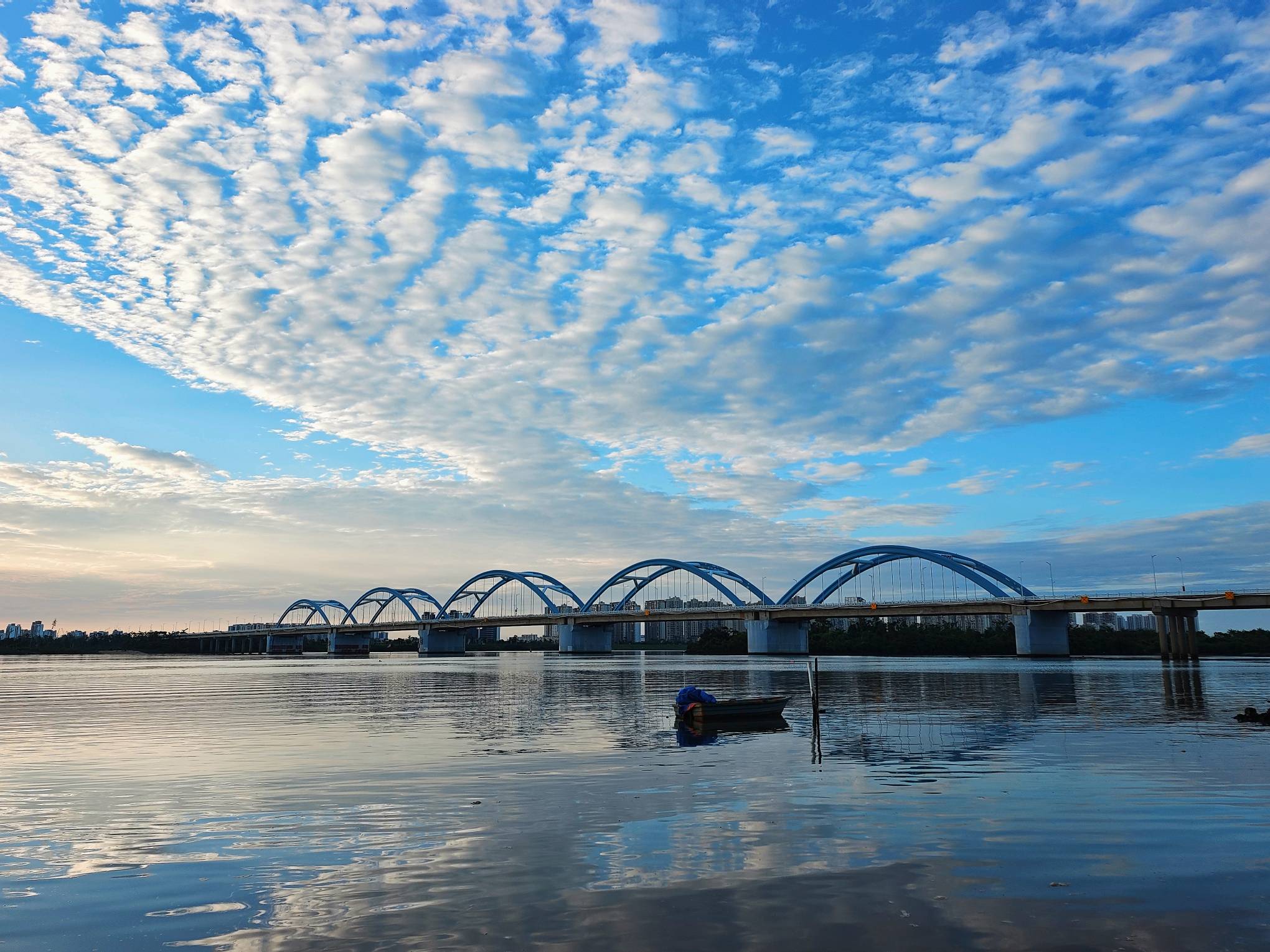 7月7日早晨,琼州大桥上的鱼鳞云太惊艳了!层层叠叠铺满天空。 #寻美海南# #寻美中国# #寻美海南发现最靓的你•风光篇#